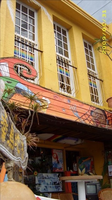 臨走前,我們還在討論端菜上樓的男子麥色皮膚、靦腆的笑容是否其實是雙胞胎,因為他兩次上樓所穿的衣服顏色不一樣;下樓後,我們認真地到服務台前向那男生提問,他和身旁一個同樣小麥膚澤的女生愣了愣,然後男生從服務台後面拿起了他的另一件衣服大夥都笑了。後來在門外的報導上,發現這餐廳是一對情侶男生學舞台設計因為愛好衝浪而結緣後,兩年前所共同打造的(店內樓梯旁就擺了塊衝浪板)。感覺真酷!能在這裡衝浪、戀愛、定居、經營一家裝潢風格獨特、到處堆滿書本的小餐廳,儘管過程想必有許多波折,還是很令人羨慕的:D